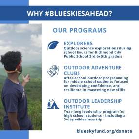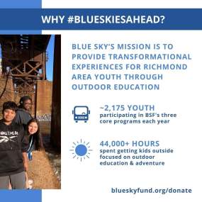 So please join me in creating meaningful outdoor experiences for kids in Richmond, VA by donating to blueskyfund.org/donate today!
